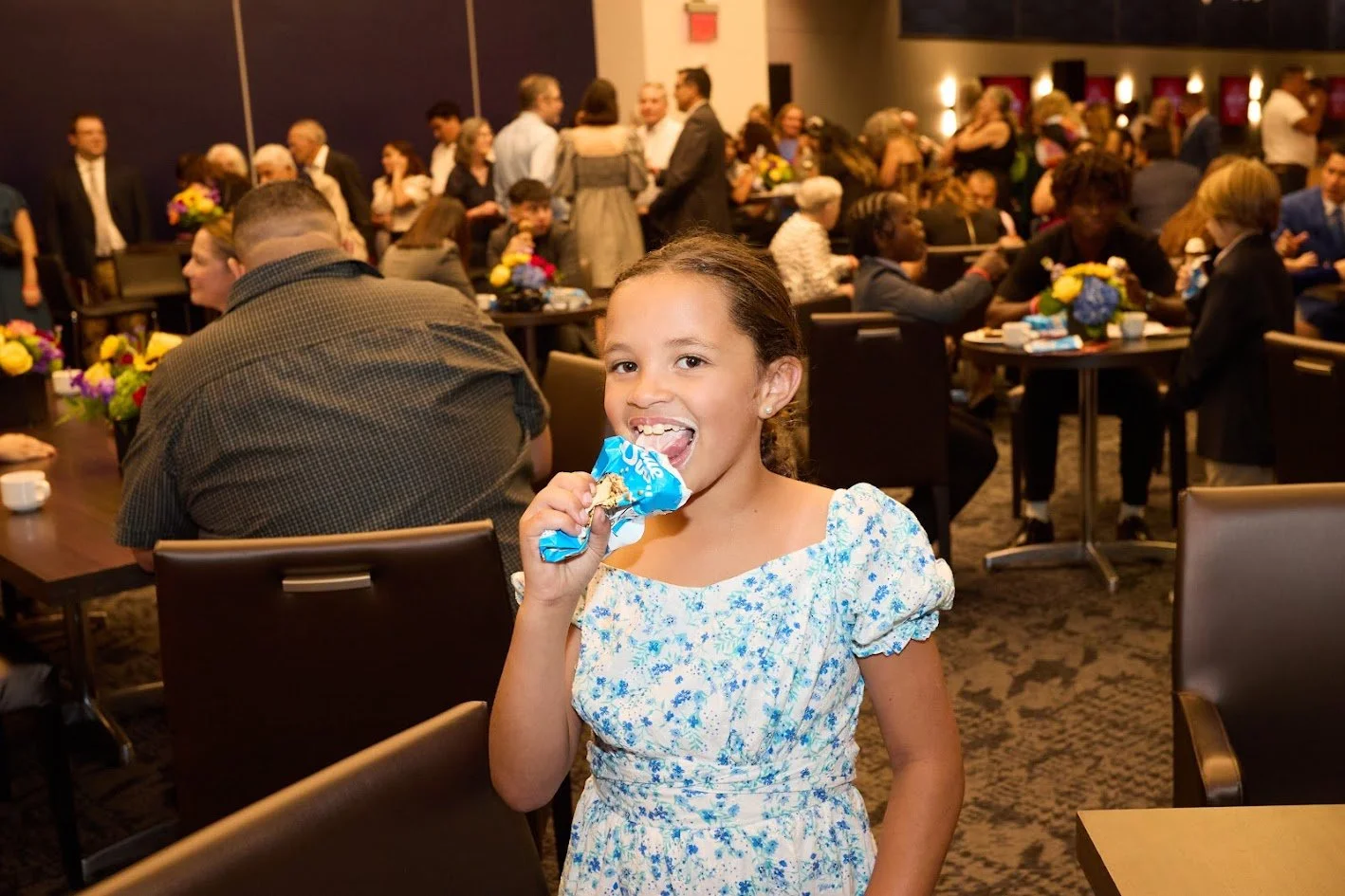 As the formal program came to a close, dessert was served and the evening took on a new rhythm. A lively Latin jazz band began to play, and their music brought even more life into the room. Children danced. Friends stood together, swaying to the beat. Conversations continued at a slower, more relaxed pace. People lingered over their desserts, not ready to leave, savoring the music, the warmth, the sense of belonging.